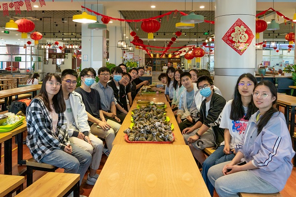 活动开始,各个组织的学生在餐厅阿姨的演示与指导下,利用餐厅提供的粽叶、糯米、蜜枣、咸蛋等原材料开始制作粽子。在制作粽子的过程中,学生们交流融洽,互相帮助,彼此分享制作粽子的经验和技巧。现场欢声笑语不断,大家都十分享受包粽子的过程。学生会指导老师秦政亲自参与到粽子的制作过程中,和学生们一起体验包粽子所带来的欢乐。制作完成后,经餐厅工作人员的精心加工,学生们品尝到了亲手包的粽子,体验到“一份劳动,一分收获”自立自强的劳动精神。感触颇深,收获满满。最后,参与活动的全体成员合照留念,以笑声结束了本次活动。