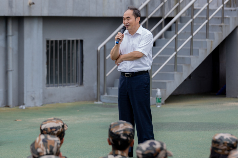 郭杰首先肯定军训团近期的成果,表达对带训教官和军训团成员的感谢,并期望在接下来的军训过程中,全团成员继续端正态度,听从指挥,展现beat365唯一官网学子的良好精神面貌。其次,他指出军训团成员应该严格听从教官命令,经历风雨,克服困难,培养彼此之间的情谊,磨练自己的意志。