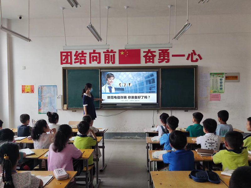 活动伊始,杜晓钰将展示内容化繁为简,着重向参会学生展示了当今电信诈骗的危害,她在讲解中说:“反诈也要从娃娃抓起。”随后,杜晓钰以三个真实发生的案例展现了当下电信诈骗“隐蔽性强”这一特点,学生群体社会阅历浅,辨别真伪的能力不足,更容易成为电信诈骗分子的目标,强化青少年学生群体的反诈意识是未来建设法治社会的根基。然后杜晓钰以设问的形式给学生介绍了电信诈骗的常见形式、常用身份,又通过情景模拟的形式邀请几名学生进行了模拟演示,向学生展现了实际可能遇到的话术骗局,并传授了相应的应对措施。活动的最后,杜晓钰说:“放松警惕就已经落入了诈骗犯罪分子的圈套。”以此让学生们时刻保持警惕。会后,李向荣说:“这次活动为孩子们敲响了反诈的警钟,提醒我们青少年学生的合法权益更应该而且必须得到全社会的重视和保护。“