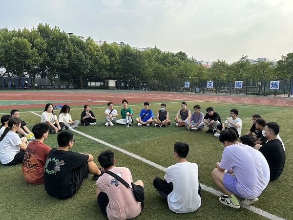 团支部成员操场进行交流活动 陈勇奇摄