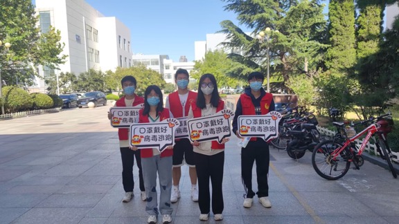 活动伊始,由毕小云带领全体支部成员观看《中国这十年》系列主题新闻发布会,学习了《论党的青年工作》,介绍了党的十八大以来我国生态文明建设和生态环境保护取得的历史性成就。毕小云提醒支部成员:“作为共青团员,我们有责任与义务去与国家同命运共呼吸。我们应该为社会做贡献。”接着,由环设2101团支部成员陈庚组织,集体参与义务志愿活动,意在提醒师生注意日常防范,在讲解完志愿活动的要求后,将全体支部成员划为4个小队,于9月22日、23日分别在南教、西环、创造太阳处进行志愿活动,提醒来往师生注意佩戴口罩,遵守交通准则,并对未戴口罩者发放爱心口罩。完成志愿活动后,各小队进行拍照留恋。团支部成员杨孜硕在参与完活动后说:“此次活动不仅有助于提醒师生防范疫情,也让我得到一次与人交流,锻炼自己的机会。这次的活动还让我明白防疫要知行合一,大家都知道的事也要去践行。防疫无小事,防范时时记。”