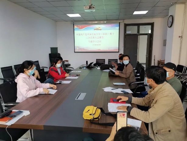 会上,教师们首先全面学习了王勇书记做的《坚持特色发展、内涵发展,奋力推进高质量发展 为建设中国特色能源领域世界一流大学而努力奋斗》的大会报告的核心内容,重点学习了五年来学校发展取得的显著办学成就、开启建设中国特色能源领域世界一流大学新征程、未来五年学校高质量发展的重点任务、坚定不移全面加强新时代党的建设等。