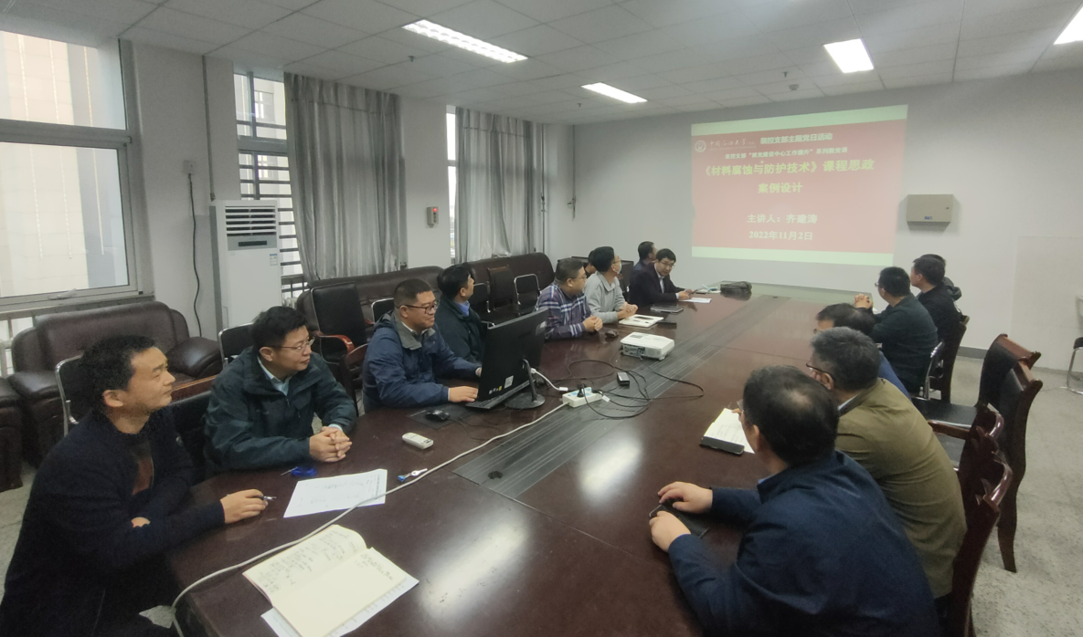 本期“抓党建促中心工作提升”系列微党课由刘文强、齐建涛两位老师主讲。刘文强老师讲解了《过程设备制造工艺学》思政育人案例设计,根据历史的演化和劳动主导因素的变化特点,提出新时代对当代大学生的新要求,结合课程内容激发学生对技术创新的兴趣及使命感。齐建涛老师讲解了《材料腐蚀与防护技术》思政育人案例设计,课程中通过介绍腐蚀的成因,影响因素与防护措施,引入侯保荣院士在海洋设备防腐方面的卓越成绩,并通过与思政相结合,引导学生树立诚实守信、实事求是、精诚协作的科学精神以及执着专注、一丝不苟、精益求精的工匠精神。两位老师结合自身实际、细致入微的课程思政案例设计分享给了老师们很大启发,与会老师进一步探讨了上述专业课程中每个思政元素的切入点、思政元素与专业知识的契合点,以及如何更好地做到“思政”与“专业”的“基因式”融合。