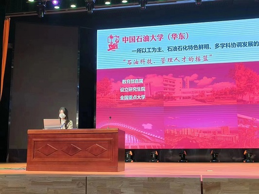 活动伊始,实践队成员刘欣雨介绍了石大的基本情况,并结合自身就读体验介绍了在石大的大学生活。接着,通过主题为“来青岛遇见山海,来石大预见未来”的讲解演示动画,刘欣雨从初始石大、求学石大、多彩生活、卓越未来、招生情况五个方面层层深入,介绍了我校的优质资源、科研实力、生活趣事等内容,让学生全方位、多角度了解石大情况,感受石大氛围。紧接着,刘欣雨分享了石大的招生官网及微信公众号,以便学生后续能更好地了解石大。宣讲结尾,为帮助学生更好地备战高考,度过充实高效的高中生活,刘欣雨分享了她个人的高考备考经验,并鼓励学生坚定理想、努力学习,预祝学生在高考中取得优异成绩。在最后的互动提问环节中,对于学生的提问,刘欣雨一一进行了解答,并表达了对他们的真切祝福与鼓励。