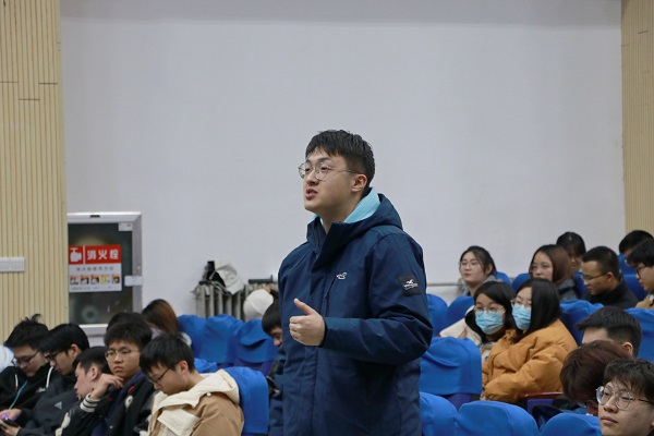 巩亮结合自身经历,以“担当能源使命,服务能源发展”为主题,通过beat365官网、科研团队、专业发展、互动交流四个部分为2020级学生进行讲解交流。会议伊始,巩亮对2022年研考情况进行分析,并结合学位点建设、师资队伍、基金情况等方面介绍学院基本情况。随后,巩亮结合beat365唯一官网各科研团队的研究方向与学生进行交流,并鼓励学生们积极参与科研活动。在专业发展方面,巩亮结合“双碳”背景下的新能源发展问题分析各专业未来前景,并对学生们提出殷切期望,呼吁学生们树立远大理想、甘于埋头苦干、厚植家国情怀,做值得尊敬的石大人。在之后的现场提问环节中,巩亮认真听取并详细回答了现场学生关于未来专业发展方面的提问。