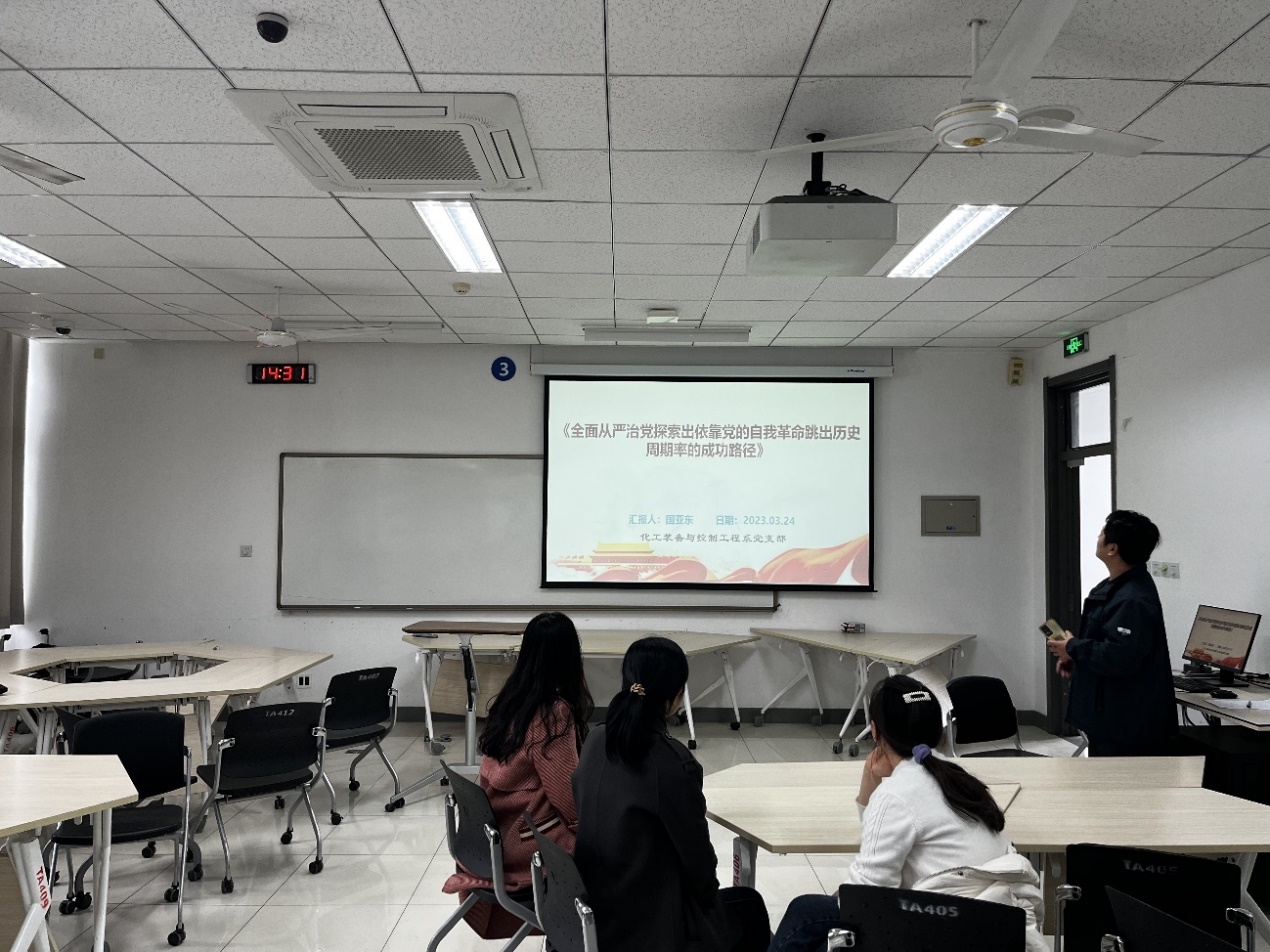 2023年3月24日,装控系党支部在综合实验楼研讨型教室A406开展第七期“抓党建促中心工作提升”系列微党课及主题党日活动,本次活动由支部书记左海强主持,装控系全体教工党员参加会议。