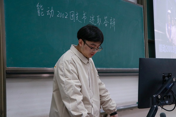 会议上,白少喆对于前段时间展开的团支部工作从组织团日活动、建设活力团支部、向党组织推荐优秀团员等方面向支部成员进行汇报。他在答辩中指出:团支部的发展,离不开辅导员老师的悉心指导以及党支部全体成员的共同努力,希望大家在今后的学习生活中不要忘记团课的学习,自觉接受共青团的教育,争取更好的为祖国进步做出贡献。随后,丁元贺对白少喆的工作成果作出了肯定,他希望能动2002团支部可以在全体成员的不懈努力下持续提高自身活力,朝着更高的目标前进。此外,丁元贺结合2023届考研结果针对2024届考研工作作出强调,他指出团支部成员应该谨慎确定目标院校,合理制定复习学习计划,科学地规划自己的作息时间。对于就业问题,他倡导各位牢牢把握秋季招聘的平台,争取更多进入到自己心仪公司或者获得期望岗位的机会。最后,丁元贺希望团支部全体成员都可以收获自己最满意的结果。
