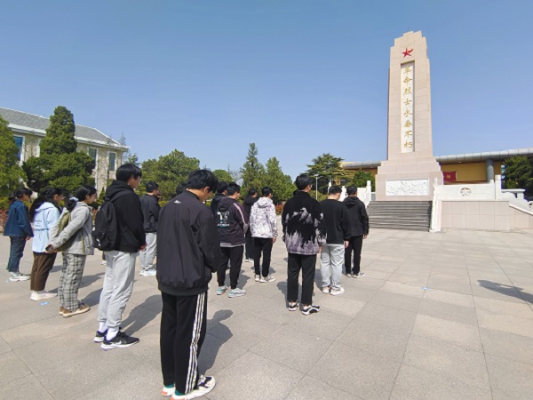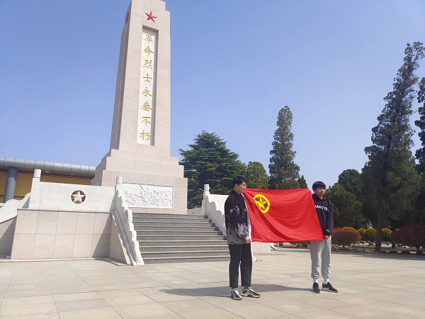 活动伊始,支部成员于烈士陵园门前集合整顿后组织进入。陵园中,支部成员肃立于革命烈士纪念碑前,李佳向在场人员明确活动主题并推进祭奠革命烈士仪式。接着,李佳就该纪念碑进行简要阐述:革命先烈用其宝贵生命创造了今日的美好生活,望今人铭记其永垂不朽的精神。副团支部书记刘旭晨和陈浩杨于纪念碑前高举中国共青团团旗,表达对革命英烈的致敬。随后,全体成员默哀三分钟并对烈士纪念碑鞠躬,礼毕后李佳带领团员宣读入团誓词。祭奠仪式结束后,学生进入展厅了解革命英烈的历史事迹、遗物及革命照片并自行到碑前献花致礼。最后,团支部全体成员于展馆正厅前集体合影留念。活动结束后,组织委员许志浩表示:“我们肩负着民族振兴、国家富强的重任,个人的切实努力和奋斗是国家社会发展中不可或缺的力量。”