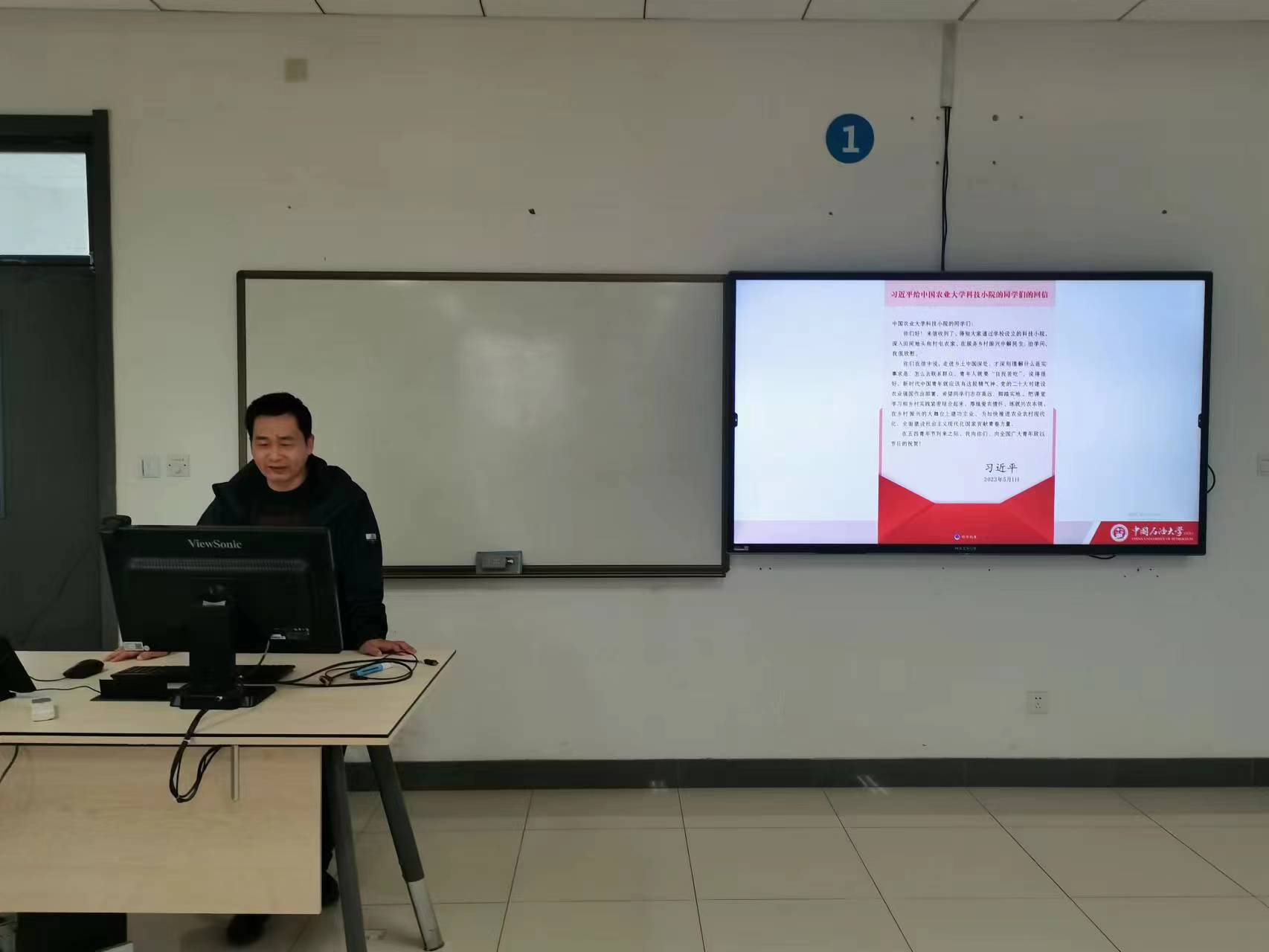 随后,支部书记左海强带领大家学习了5月1日习近平给中国农业大学科技小院的同学们的回信,总书记希望青年学生们志存高远、脚踏实地,在民族复兴的大舞台上建功立业,为全面建设社会主义现代化国家贡献青春力量。