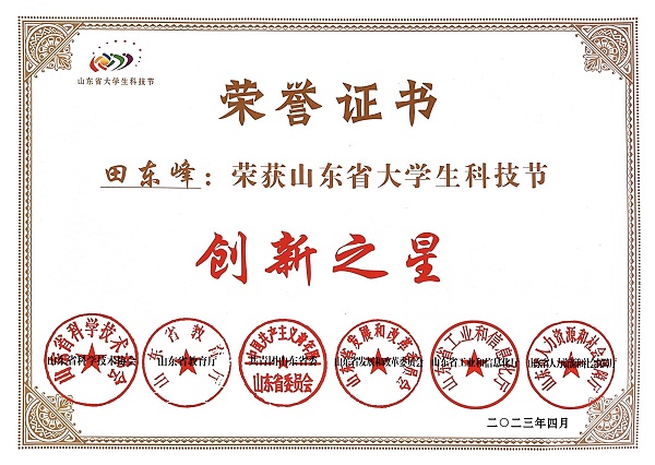 山东省大学生科技节“创新之星”证书