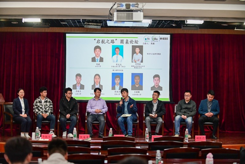 学生论坛环节,山东大学2021级硕士生李振东、中国石油大学(华东)2020级硕士生刘佳萱、青岛大学2021级硕士生张振芳、山东科技大学2021级硕士生吴健鹏和山东理工大学2020级硕士生巩泉役等五位同学分别做报告,分享了个人在科研学习、学生工作、求职深造等方面的经验。山东大学陈健副教授、中国石油大学(华东)张龙龙副教授、山东省电力公司超高压公司刘明帅专家,以及五位学生代表共同参与“启航之路”圆桌讨论。