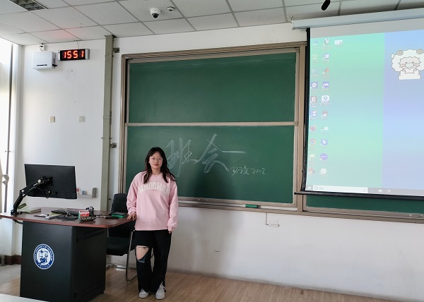团支书王楸茹正在讲话 王玉娇摄