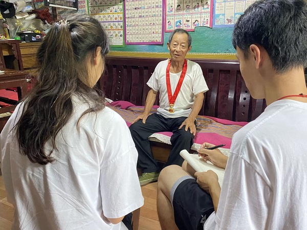 8月12日,实践队一行到达西山村,采访“光荣在党五十年”纪念章获得者姜会芝老人,倾听红色故事,为调研赋能。在采访过程中,姜会芝老人表示:西山村是一个红色文化底蕴深厚的百年老村,历史上曾经历多次战争的摧残,从抗日战争,解放战争再到建国初期的敌特破坏,都给村子带来一定程度的破坏,后在共产党的领导下,西山村人“打土豪,抓生产”,逐步恢复村内生产建设,积累起了红色底蕴。在访谈过程中,姜会芝老人还多次向实践队成员提及“出夫”一词,即不计报酬的义务劳动,并表示,在村内急需建设的关键时刻,作为一名光荣的共产党员,本就应发挥“我是党员,我先上”的先锋模范作用,为村内生产建设出力。