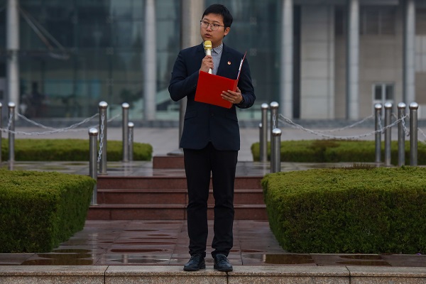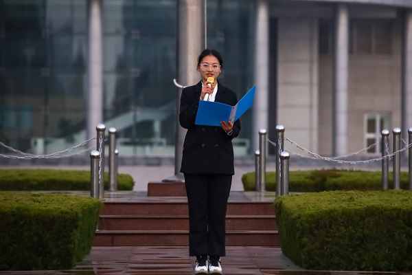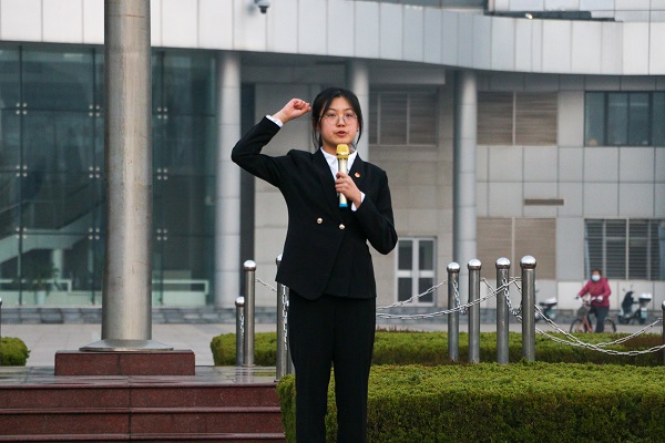 最后,2023级团员代表杨思楠带领全体团员右手握拳,面向国旗,重温入团誓词,齐唱校歌《北京石油学院学生之歌》。杨思楠表示:“参加升旗仪式,我感受到了国家的强大和民族的自豪。这是一种精神的传递,也是对祖国的热爱和尊重。我们应当珍惜和热爱祖国,为祖国的繁荣富强贡献自己的力量。”