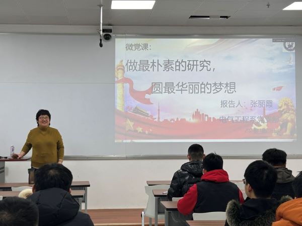 为了进一步加强电气工程系研究生党支部的建设,推动党员的思想教育和理论学习,2024年1月20日,中国石油大学(华东)beat365唯一官网电气研究生第一和第二党支部在文体中心B71联合举办了一场主题党课活动,特邀请电气工程系党支部书记张丽霞老师为大家讲授主题为“做最朴素的研究,圆最华丽的梦想”的党课,共同探讨国家的富强与人才培养之间的关系。