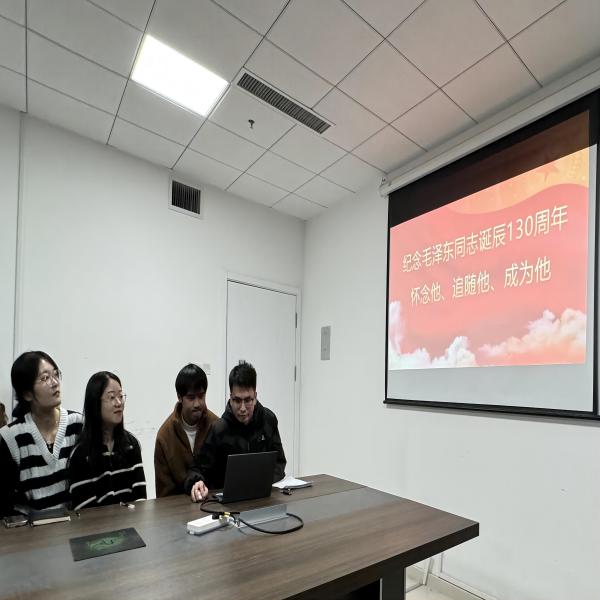 会议伊始,肖玉华同志对本次组织生活内容进行介绍,之后由正式党员李化南同志做出汇报,并分享讨论了2023年12月26日中共中央在人民大会堂举行的以纪念毛泽东同志诞辰130周年座谈会上的内容。接着,李华南同志带领支部全体党员回顾了毛泽东同志伟大的一生,从他的青年壮志到他的独特思想再到他所留下的感人至深的人民情怀,以及他风雨老成的领袖风采。听完李华南同志的分享,党支部同志对毛泽东同志传奇的一生感悟颇多,有同志表示:“毛泽东同志独特思想的形成告诉我们在科研中要注重理论学习,并将理论知识与实际问题相结合,形成自己的学术风格和研究方向。”最后,李鑫同志进行了总结,鼓励党支部成员要认真学习习近平总书记重要讲话精神,坚持全面正确的历史观,永远铭记毛泽东同志不可磨灭的历史功勋、光耀千秋的历史贡献。