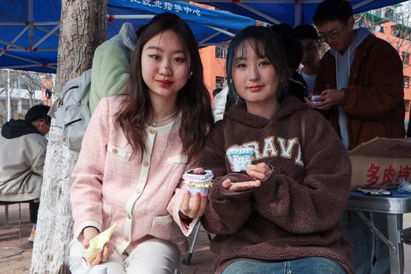 活动伊始,工作人员为学生准备多肉植物,营养土,小花盆以及奶油胶。在场权益维护部成员通过询问参加活动学生植树节相关问题来考验其是否拥有认领多肉的资格,成功回答问题后,便可到一旁的负责种植的摊位领取多肉植物。部分学生在答题结束后还在与同伴讨论刚刚涉及到的问题,交流从此次问答中收获的知识,更有部分学生在获得属于自己的多肉植物后,又回到答题点学习植树节的相关知识。与此同时,在负责多肉植物种植的活动场地,参加活动同学有的在用奶油胶进行花盆DIY,有的在仔细挑选多肉植物进行种植。