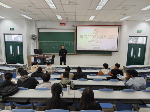 为推荐优秀共青团员作为入党积极分子候选人,培养社会主义事业接班人。3月30日下午,电气2202团支部于西环104召开入党积极分子团支部推优大会。本次推优大会由电气2202团支书相彦明及班长王嘉主持,电气2202团支部全体成员参加。