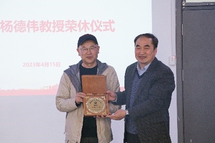 系主任姜烨老师感谢杨老师为能动系教学科研工作、人才培养做出的贡献,并向杨德伟教授献花。学院陈书记给杨老师颁发了荣誉退休奖章,工会主席马老师给杨老师赠送了纪念品。