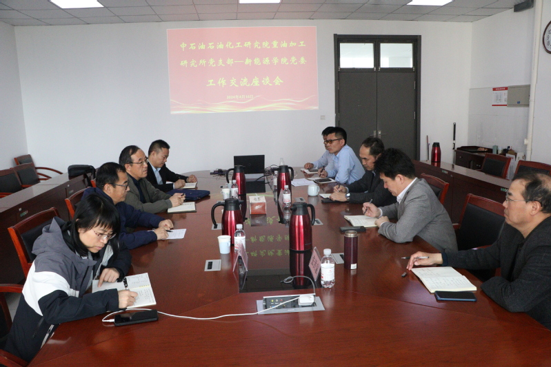 常务副院长吴明铂从人才培养、科学研究、学科专业建设、平台建设、高层次人才引育等方面向客人介绍了学院近几年取得的主要成绩。结合中国石油石油化工研究院重油加工研究所的科研情况,向客人全面展示了学院在传统能源和新能源领域的研究成果和研究方向,并表示,双方有着深厚的合作基础,合作空间十分广阔,期待在已建立的良好合作的基础上,进一步对接合作需求与合作内容,实现院企双方深度合作,在人才申报、科技攻关等方面实现重要突破。
