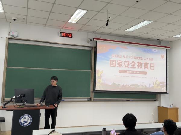 活动伊始,梁嘉源通过观看国家安全宣传片、讲解PPT等形式,向支部成员们普及国家安全法律法规和安全防范知识,引导其树立正确的安全意识,积极投身国家安全建设中。随后,梁嘉源介绍了关于国家安全的真实案例,就国家安全形势、安全法律法规等方面内容进行深入解读和探讨。而后,梁嘉源组织了国家安全知识问答活动,通过互动游戏的形式增强支部成员们对国家安全知识学习的兴趣,提升其安全意识和应对能力,并表示道:“维护国家安全是每个公民的责任和义务,希望同学们通过全民国家安全教育日活动,进一步提高自身对国家安全和生态安全的认识,增强自身维护国家安全的使命感和责任感。”