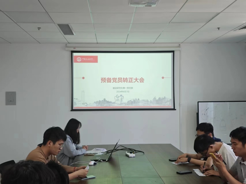 能动研究生第一党支部于2024年6月7日上午,在新能源大厦575会议室召开预备党员转正支部大会。大会由支部书记秦晋一同志主持,能动研究生第一党支部全体正式党员与预备党员参加此次大会。