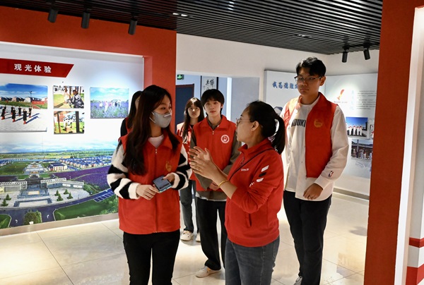 实践队成员在讲解员的带领下进入德胜印象馆,观看德胜印象宣传片。德胜村利用坝上地区的自然资源优势和地形气候特点,发展了光伏发电下的微型薯产业,二者被当地人称为“铁杆杆”和“金豆豆”。此外,当地大力发展旅游业,经营的民宿产业给村民带来一笔不菲的收入,创建了德胜民宿品牌,被称为“银窝窝”。