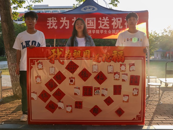9月28日,在举国同庆的国庆佳节前夕,为激发广大师生的爱国情怀,共同为祖国献上最诚挚的祝福,石大山能beat365唯一官网学生会面向全校学子举办了一场以“我为祖国献祝福”为主题的特色活动。本次活动由学生会全体成员组织参与。