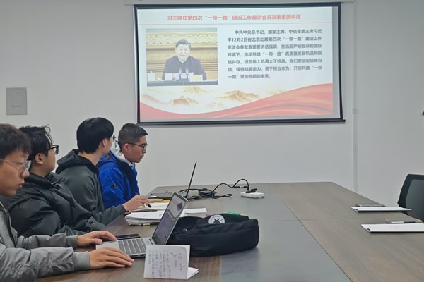 会议伊始,党支部书记李国彬介绍了预备党员田金鑫和肖会丽的基本情况。随后,两位预备党员分别宣读了入党志愿书,表达了对党的认识、入党的动机以及未来的努力方向。接着,会议按照程序对两位同志的入党材料进行了详细审查,并听取了培养联系人对其思想状况、学习成绩及日常行为表现的意见汇报。与会党员就是否同意接收田金鑫和肖会丽同志为中共预备党员进行了充分讨论并投票表决,最终一致通过决议,正式接受他们成为党组织的新成员。而后,李国彬书记对两名新同志表示祝贺与欢迎,并鼓励新同志在做好本职工作的同时,积极发挥模范带头作用,同全体党员一起为党支部建设贡献力量。会议最后,张意洋同志以“新时代‘一带一路’建设的新机遇与新挑战”为题进行了思想汇报。他通过解读习近平总书记在第四次“一带一路”建设工作座谈会上的重要讲话,为大家普及了“一带一路”的相关知识,深入分析了这一倡议带来的发展机遇及其面临的挑战,进一步增强了大家的责任感和使命感。