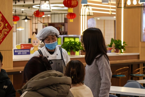 与餐厅工作人员交流 靳若帆摄