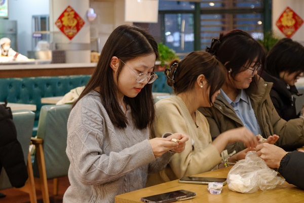 12月17日下午,能动2302、能动2303团支部在荟萃苑餐厅三楼进行包饺子活动。活动开始前,团支书提前规划、联系主办方进行所需材料、时间场地的预约等。活动伊始,支部成员洗净双手,跃跃欲试,支部成员围坐在桌旁,在互相观摩、交流和尝试下,大家逐渐掌握了技巧,初次尝试包饺子的学生们略有生疏,但在荟萃苑工作人员的耐心指导下,便逐渐掌握了包饺子的技巧。从最初的手忙脚乱到后来的有模有样,反映出支部学子坚持学习、不断进步的精神面貌。