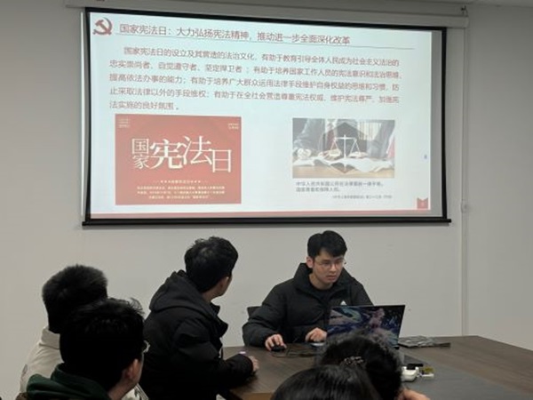 会议伊始,蒋振兴首先对十二月的热点新闻进行了梳理和分享。他特别强调了国家公祭日的重要性,通过详实的资料和深刻的分析,让与会党员对这一历史事件有了更全面的认识。蒋振兴同志的分享不仅增强了大家对历史的敬畏,也激发了大家维护和平、反对战争的坚定信念。随后,会议播放了关于“一国两制”的相关视频资料。视频内容涵盖了“一国两制”的理论与实践,以及其在香港、澳门的成功实践。通过观看视频,党员们对“一国两制”政策有了更深刻的理解,进一步坚定了维护国家统一和领土完整的决心。