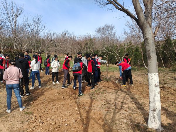 在植树活动现场,党员们与西海岸新区一中的师生们分工协作,密切配合。大家手持工具,挖坑、栽树、培土、浇水,每一个环节都一丝不苟。经过大家的共同努力,共计种植了8棵玉兰和8棵樱花树。这些新栽种的树木在春风中挺立,为小黄山增添了一份生机与活力。此次活动不仅让党员们在实践中体会到了劳动的艰辛与快乐,更增强了大家的责任感和使命感。同时,通过与西海岸新区一中的合作,进一步加强了学校与党支部之间的沟通与交流,为学生们树立了良好的榜样,引导他们积极参与环保行动,培养他们的社会责任感。