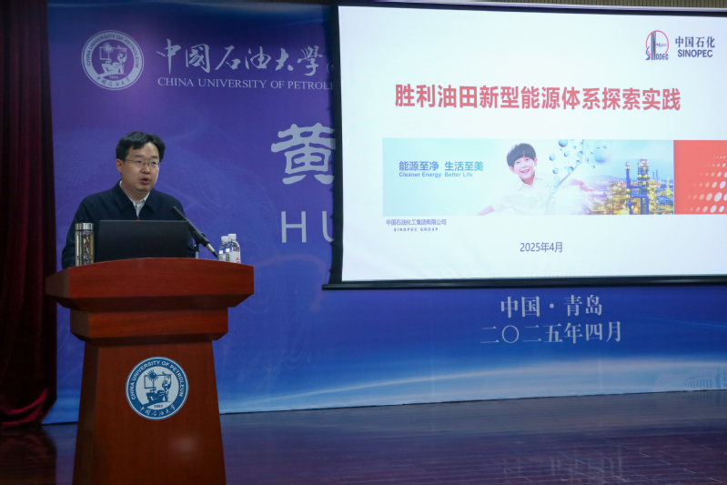 4月28日,中国石化集团胜利石油管理局有限公司党委常委、副总经理,东营市人民政府副市长杨勇做客黄岛讲坛新能源分论坛,为师生做题为“胜利油田新型能源体系探索实践”的报告。副校长戴彩丽出席讲坛。