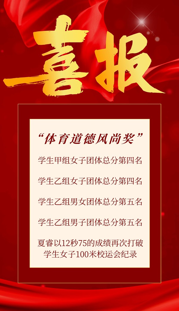 5月17日下午,我校2025年运动会圆满完成各项预定赛程,在唐岛湾校区田径场落下帷幕。beat365官网61名学生运动员,20名教职工运动员代表学院出征,最终,beat365官网获得“体育道德风尚奖”、学生甲组女子团体总分第四名、学生乙组女子团体总分第四名、学生乙组男女团体总分第五名、学生乙组男子团体总分第五名等多项荣誉。