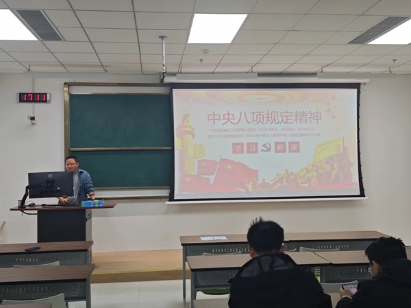 会议伊始,支部书记丁元贺同志首先传达了习近平总书记关于中央八项规定的重要讲话精神和最新部署要求。八项规定自2012年出台以来,作为党风政风建设的重要法宝,沉甸甸地引领着全党改进作风、密切联系群众。会议回顾了近年来学院贯彻落实八项规定取得的显著成效,尤其是在规范会议活动、厉行勤俭节约、严肃财经纪律等方面的积极变化,但同时也直面了当前形势下仍存在的个别形式主义和享乐主义等问题。随后,全体党员结合自身学习、科研、生活实际,围绕贯彻落实中央八项规定精神展开深入交流。大家一致认为,作为研究生党员,在严格遵守政治纪律和政治规矩的同时,更要身体力行践行八项规定,从细节做起,带头改进学习态度和科研作风,反对铺张浪费,坚决抵制各种不正之风。会议最后,支部书记强调,贯彻落实中央八项规定精神是当前基层党组织的重要政治任务。研究生党员要增强“四个意识”、坚定“四个自信”、做到“两个维护”,以高度的政治责任感和使命感把中央八项规定精神转化为自觉行动。