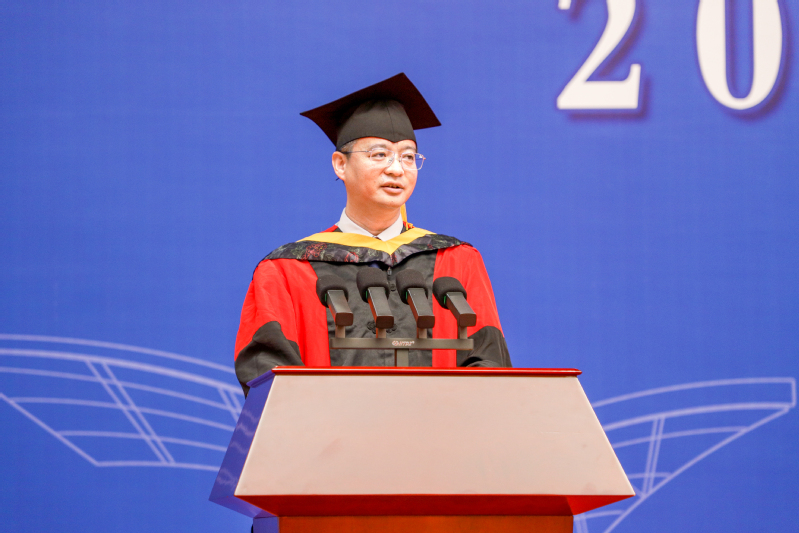 随后何振宇、李鑫分别代表毕业本科生和毕业研究生上台发言。何振宇表达了对学院和老师们辛勤付出的感谢,他谈到过去四年2025届本科毕业生始终以“新能源人”的高标准要求自己,在学院发展的征程中留下了独属于他们的印记,未来他们将继续把这份卓越带到学习和工作岗位中。李鑫表示,2025届毕业研究生见证了学校与学院的发展和成就,自身也经历了涅槃重生的蜕变,未来自己将以“能源报国”为信念基石,把科研初心融入产业实践,在化石能源高效转化与绿色工艺创新中践行使命,以科技力量助力“双碳”目标,让青春在保障国家能源安全的征程中绽放光彩。