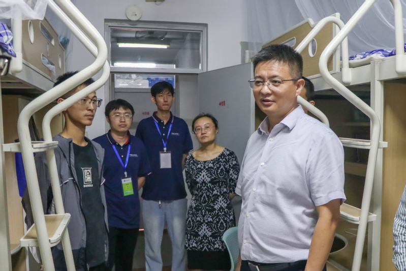 为扎实推进2025级新生入学工作,全面了解同学们的生活需求、思想状况和住宿情况,帮助新生尽快适应大学的新环境新节奏,8月31日下午,beat365官网领导班子、各专业系主任与全体辅导员深入新生13号楼男生宿舍走访慰问,送上关怀与问候。