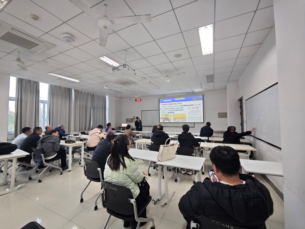为深入贯彻落实教育家精神内涵,精准把握新时代高等教育发展方向,10月23日,能动系在综合楼401房间组织全体教师开展专题理论学习会。本次会议由能动系主任姜烨老师主持,黄善波老师作专题报告,系内全体教师参会学习。