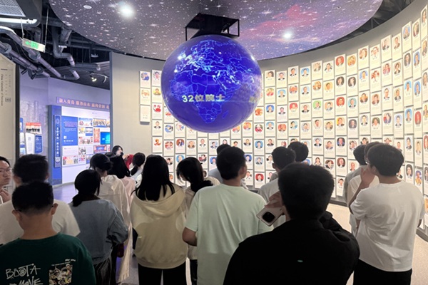 在校史馆,新生们跟随着讲解员,走进校史展厅,新生们认真观摩展柜中陈列的学生证、旧教材和各种实验器材等,墙上的迁校路线图展现出学校从北京起步,辗转东营,最终扎根青岛的完整历程;优秀校友展区陈列着多位杰出校友的照片与简介。他们秉持着“艰苦奋斗、惟真惟实”的石大精神,在不同领域取得卓越成就,激励着在场的每一位新生。走进能源学科展区,新生们了解到学校从以石油为主的传统能源领域,逐步拓展到风电、太阳能等新能源方向,展现了在能源领域的持续探索与创新进步。
