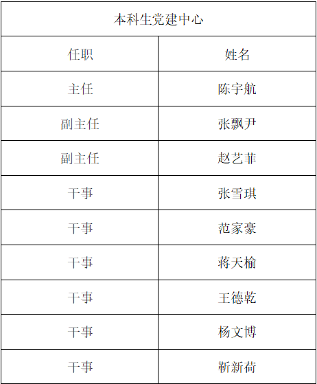 根据学院发布的《关于公开选拔beat365唯一官网2025-2026学年学生党建中心成员的通知》,经过个人申报、资格审察组织推荐、现场面试等环节,报学院党委审核通过,最终确定beat365唯一官网2025-2026学年学生党建中心成员任职名单如下:
