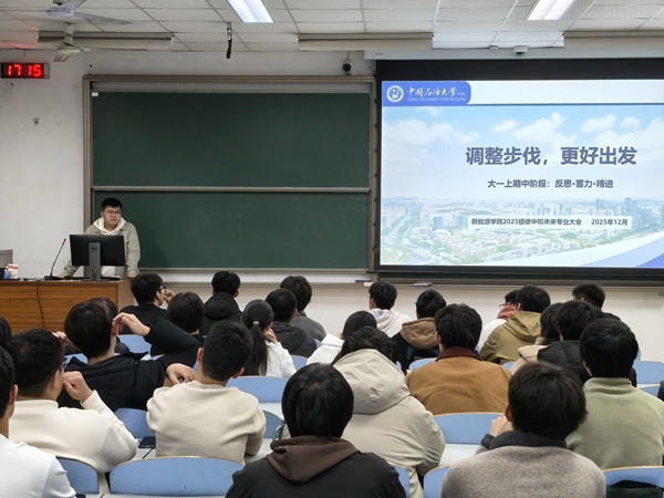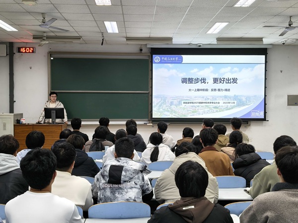 马尉博老师首先结合本研一体化培养的核心特点与实施要求,系统解析了绩点评定与综合测评的具体评价体系,着重强调了学术研究规范与学习过程管理在本研阶段的重要性。他现场分步演示了数字石大平台的各项操作流程,清晰讲解了平台使用中的重点与注意事项,并针对班级日常管理的优化完善,提出了建立精细化制度考核表的具体建议。此外,他还立足校园生活实际,从宿舍安全隐患排查、卫生纪律保持标准及其他学生管理规定等方面,向同学们进行了细致全面的说明。王嘉老师则着重强调了班级凝聚力的培育对于集体发展和个人成长的重要意义,并就即将到来的期末考试备考,向同学们提出要端正学习态度、注重复习实效的核心建议。张子良老师在班会中指出,本研班的学习平台对同学们而言既是难得的机遇,更是需要扛起的责任,同学们需始终保持清醒的自我认知,在扎实提升学业成绩的同时,更要全面打磨思想品德、锤炼综合素养。三位辅导员的指导内容详实具体、贴合班级实际,针对性极强,形成了从学业管理方法到人格培养方向的完整指引体系。