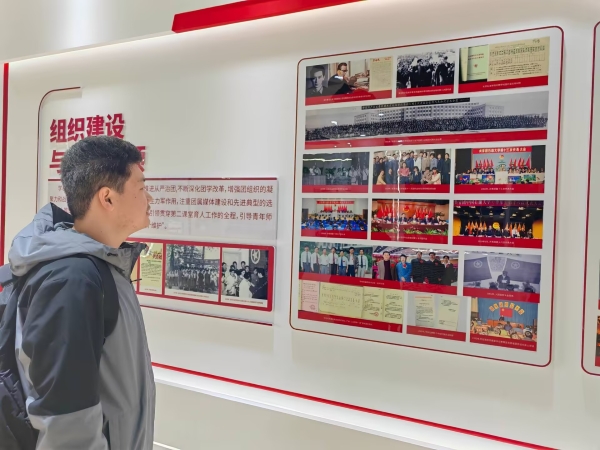 活动伊始,团员们在团支书李子梁的带领下走进团情团史教育基地,依次参观了中国共产主义青年团、组织建设和思想引领、创新创业、社会实践与志愿活动、第二课堂等板块。在“中国共产主义青年团”板块,团员们查看共青团发展历程文献资料、历史影像,了解共青团在不同历史阶段团结引领各族青年的使命担当和我校共青团发展历史。在“组织建设和思想引领”板块,团员们学习共青团组织架构设置,并以正在进行的团日活动为例学习团组织引领思想的重要性。“在创新创业”板块,李子梁介绍了大学生创新创业训练计划,互联网+,挑战杯等比赛项目,并鼓励同学们积极参加创新项目。在“社会实践与志愿活动”板块,团员们查看支教助学、社区服务、乡村振兴等主题实践活动的记录档案、志愿者心得,了解到学校的贡献,鼓励同学们继续进行社会实践和志愿活动。在“第二课堂”板块,李子梁介绍了我校有关第二课堂成绩的相关事宜,提醒同学们注重第二课堂对综合素质评价的影响。最后通过进一步了解团情团史,激发各位团员的爱国热情与民族团结的积极性,希望为中华民族共同体意识与民族团结作出属于我们新时代青年的贡献