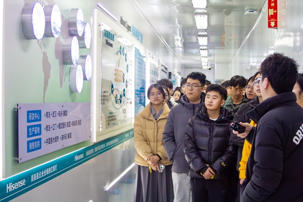 活动中,海信工作人员向同学们系统介绍了企业在多个核心领域的创新成果。随后,同学们在讲解引导下参观了科技展览大厅,近距离体验了海信自主研发的服务机器人、8K超高清电视、激光电视等高科技产品,直观感受前沿科技对生产与生活方式的深刻影响,并与技术人员就产品原理与应用场景进行了交流。最后,全体人员赴海信信息产业园,实地观摩核心制造流程,工作人员重点介绍了芯片研发与生产工艺,使同学们对智能制造与高端装备有了更为具体的认识。