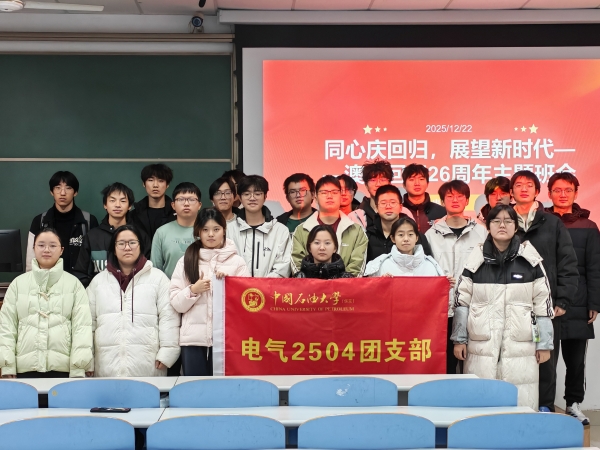 为纪念澳门回归祖国26周年,厚植爱国主义情怀,引导青年学子铭记历史、勇担使命,12月22日上午,中国石油大学(华东)beat365唯一官网电气2504班在南教306举办“同心庆回归,展望新时代”主题班会。本次班会由电气2504班班长郭淏宇主持,班级全体同学参与活动。