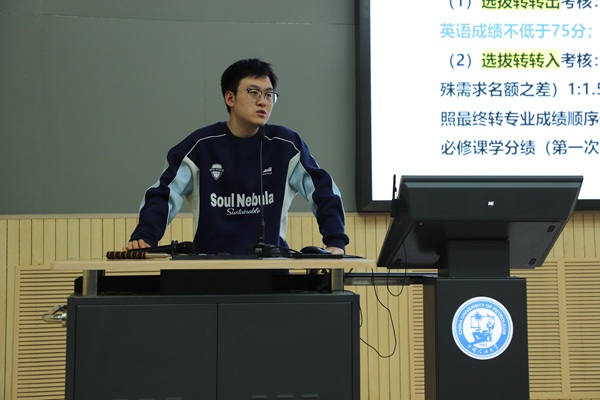 王嘉通报上学期各专业班级的学业情况,针对部分课程及格率不高、学生存在欠学分等问题,要求相关学生按时完成重修报名,避免后期学习压力叠加。他围绕三项学业任务提出具体要求:一是六月四六级考试报名在即,未通过四级学生需尽早制定复习计划;二是重视体育课程平时成绩积累,确保体测达标;三是有转专业意向学生提前对接目标课程安排,确保学分衔接顺畅。