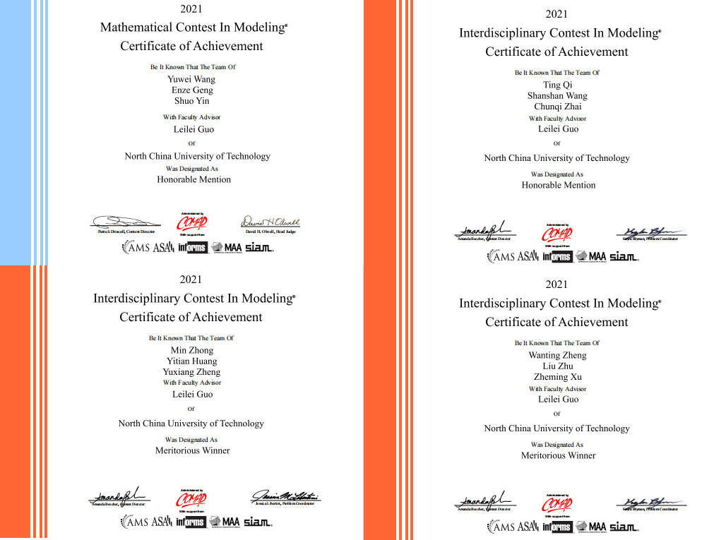近日,由美国数学及其应用联合会主办的2021年国际大学生数学建模竞赛(MCM/ICM)成绩揭晓。象城娱乐官网有7个代表队参赛,共获得一等奖(Meritorious Winner)2项、二等奖(Honorable Mention)2项。