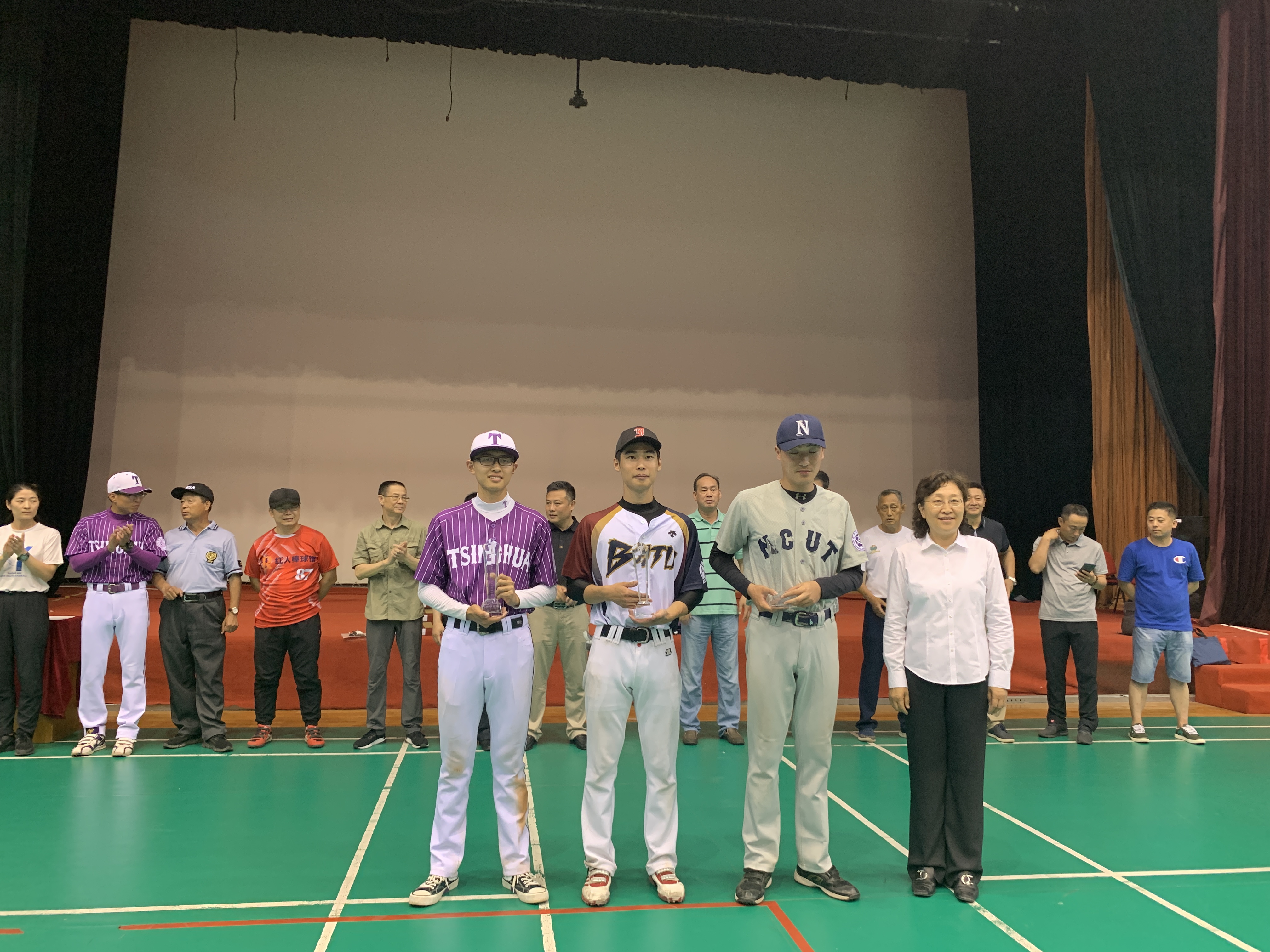 象城娱乐官网副校长栗苹、中国垒球协会常务理事郑璐、北京市大学生体育协会副主席杨慈洲、awc777万象城娱乐官网党委书记龚维华等领导出席了闭幕式并为获胜代表队颁奖。