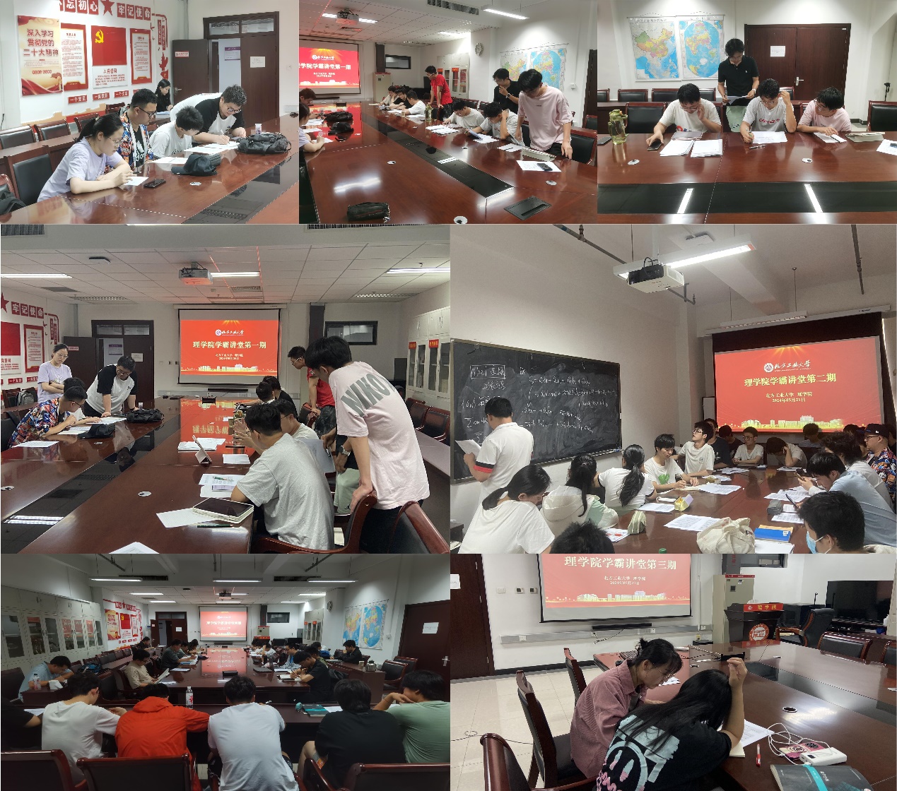 团体辅导,营造学院优良学风。5月20日晚,学院“学霸讲堂”期末辅导班正式开班,为期两周共四期,69名学业困难学生参加此次辅导。朋辈讲师们针对《高等代数》、《数学分析》等课程重难点内容和考试中易考易错题型帮助同学们梳理知识架构、查漏补缺。同学们与朋辈讲师积极交流讨论,提出学习上的问题与困惑,讲师团的同学们也都进行耐心帮助和解答。