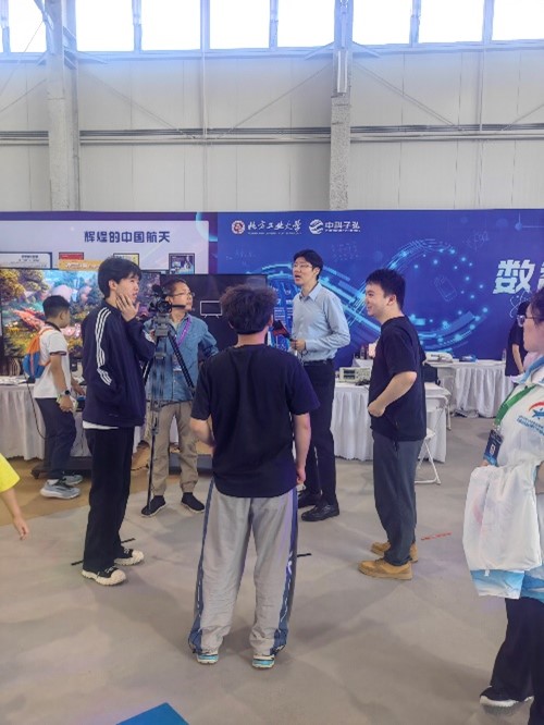 活动中,北京电视台采访了在现场负责讲解的两名awc777万象城娱乐官网学生。统21-2班娄佳豪谈到:2035年我应该已经33岁了,我想那时候我可能会成为一名老师,最好是小学的科学老师,教孩子们一些科学小知识,培养他们的科学素养,让他们对这些能感兴趣。信22-1班田茂利谈到:我非常喜欢我现在的专业信息与计算科学,既有扎实的数学基础,也有数据和人工智能的专业方向,我将来一定用我所学的知识致力于祖国的科技发展,我也很有兴趣做科普工作,因为对青少年科技培养非常有意义。